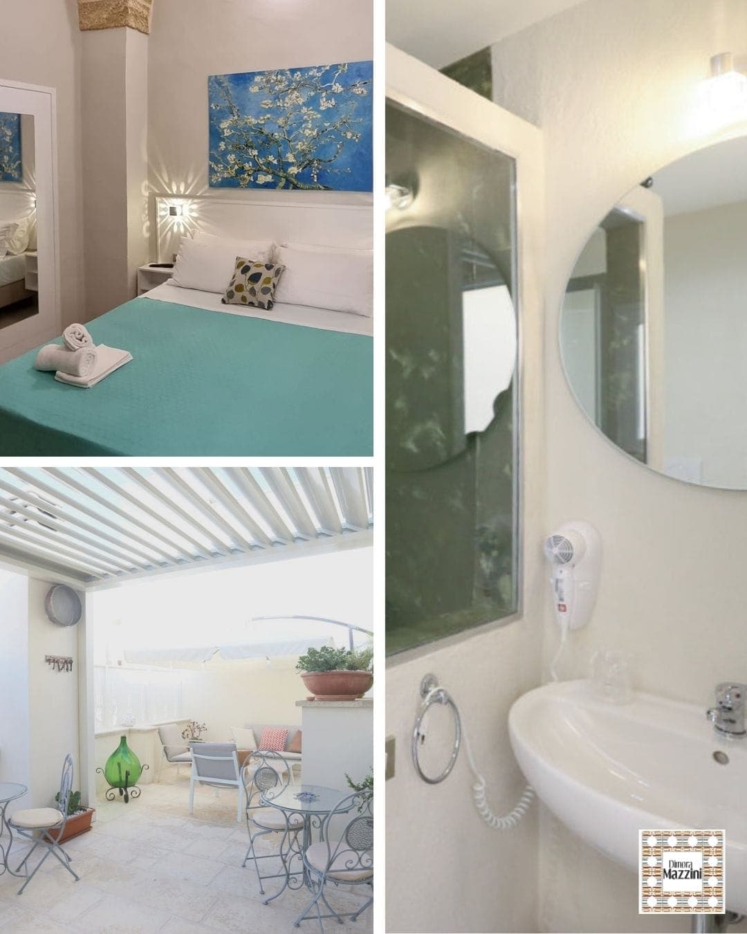 Dimora Mazzini, è una dimora storica recentemente ristrutturata con materiali di pregio, situata nella zona del centro storico di un piccolo comune, Tuglie, dolcemente adagiato sul versante Jonico della fascia collinare delle “serre” salentine, affacciate sul panorama della baia di Gallipoli. Grazie alla sua posizione geografica, Tuglie è un ottimo punto di partenza per escursioni e visite guidate alla scoperta delle bellezze naturalistiche, paesaggistiche ed archeologiche del Salento.Dimora Mazzini dispone di 4 camere: 2 triple, 1 doppia e 1 suite matrimoniale con vasca idromassaggio e terrazzino esclusivo, tutte con letti King size, finemente arredate e curate in ogni particolare, il cui nome è ispirato ai “menhir” di Tuglie. La struttura dista 39 km da Lecce e 12 km da Gallipoli e 66 km dall’Aeroporto più vicino, quello di Brindisi-Salento.