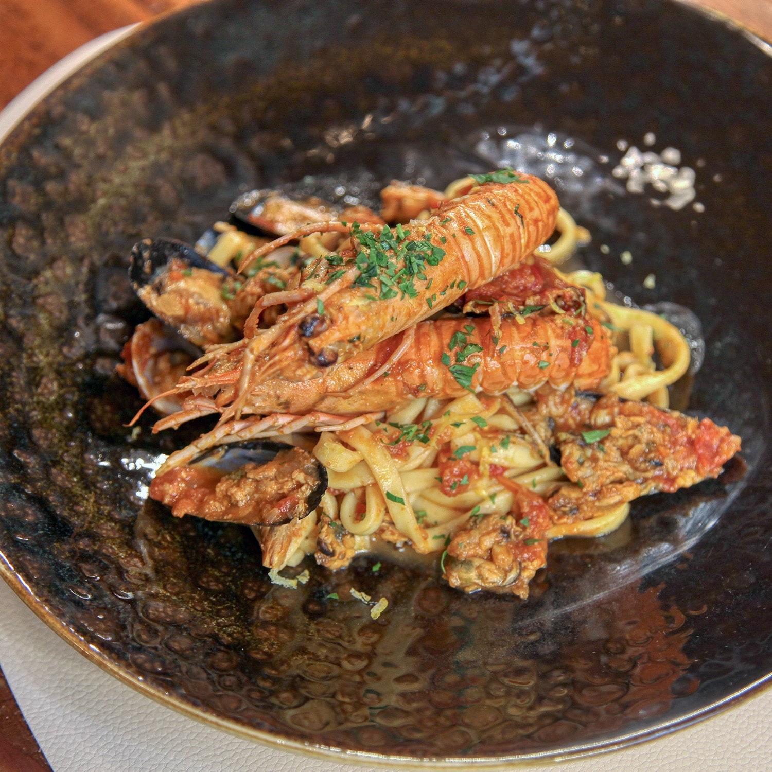 Prepariamo ogni giorno piatti di mare con pesce fresco, selezionato e lavorato con rispetto e cura. Crudi, grigliate, primi piatti delicati e intensi: ogni boccone è un tuffo nel Mediterraneo.