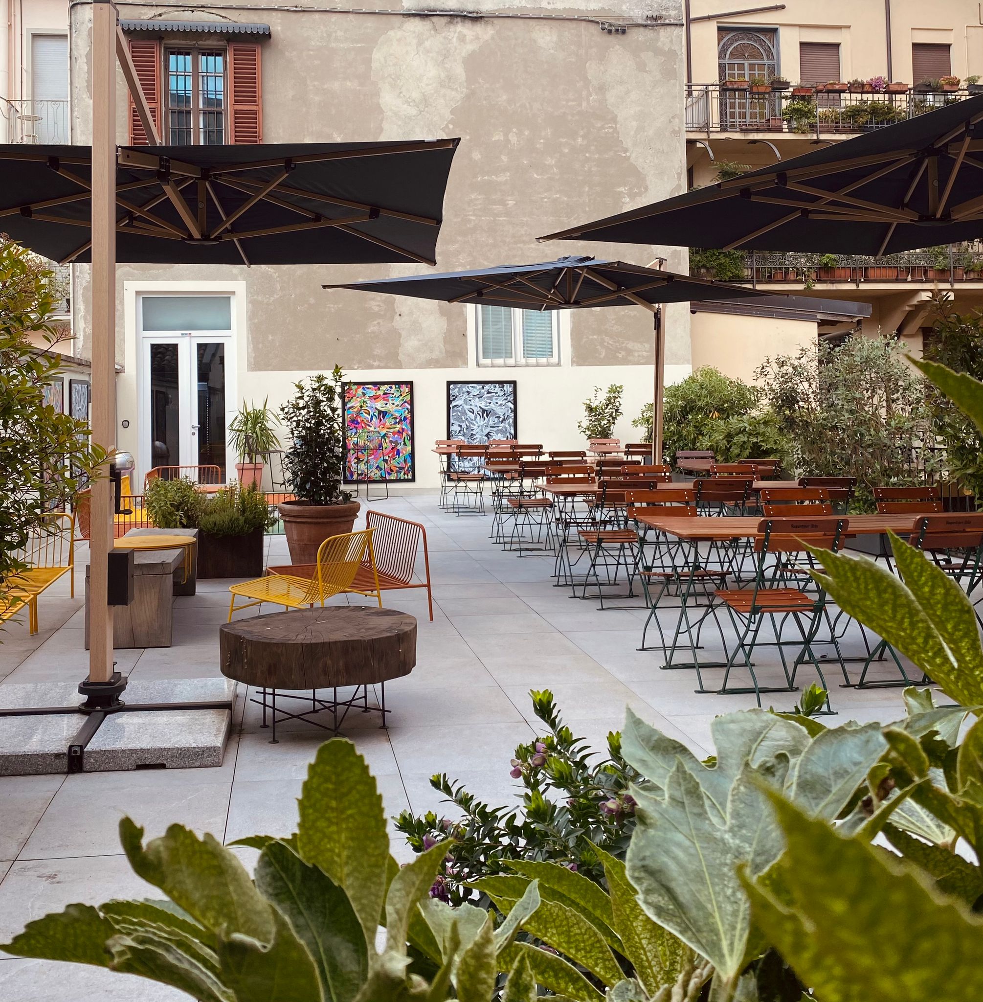 La terrazza affacciata sulla corte è l’ideale per un aperitivo, una cena o un evento da ricordare.